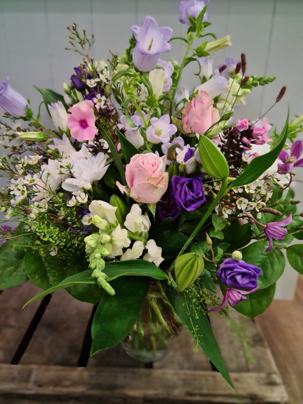 Please Note that due to the seasonal availability of flowers it may be necessary to vary individual stems from those shown. Our skilled florists may substitute flowers for one similar in style, quality and value. Where our designs include a sundry item such as a vase or basket it may not always be possible to include the exact item as displayed. If such an occasion arises we will make every effort to replace the item with a suitable alternative.