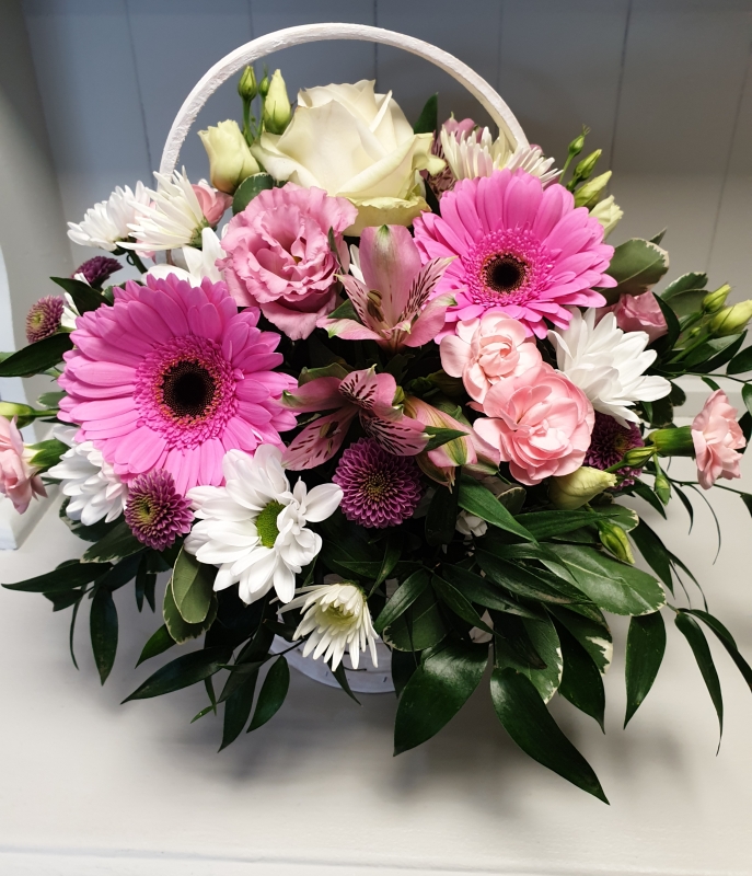 Expertly arranged in a charming basket, each stem is meticulously placed to create a picturesque display that will uplift the spirits of your loved ones. Whether it's a gesture of support, encouragement, or simply to let them know they're on your mind, our 'Gentle Thoughts' basket arrangement is the perfect way to show you care.